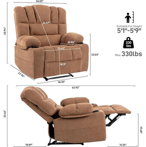 Massage Recliner Chair with Heating Vibration - Oversized Single Sofa Seat