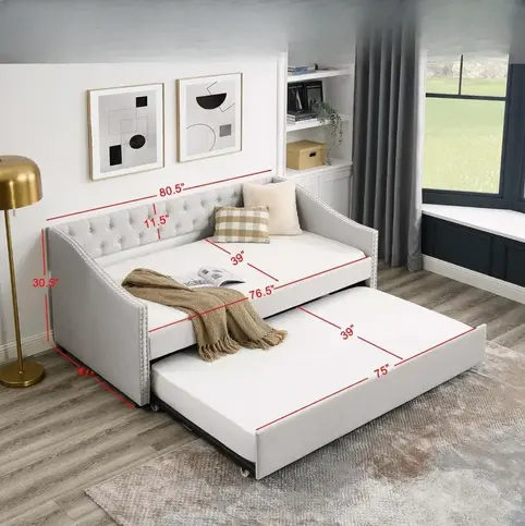Modern Velvet Twin Daybed with Trundle - Button-Tufted Sofa for Bedroom...